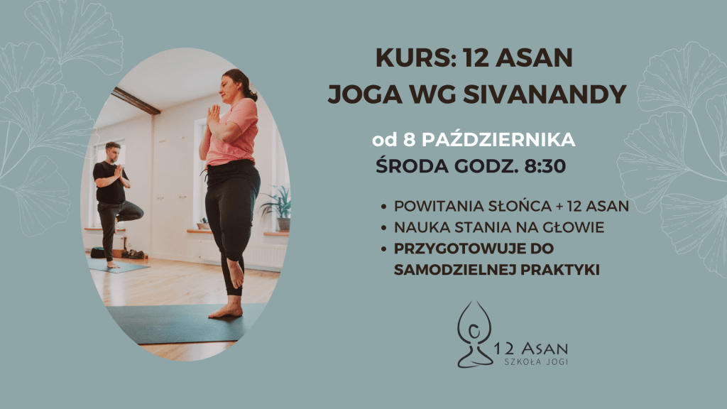 Kurs, który przygotuje Cię do samodzielnej praktyki jogi! Poznasz koncepcję jogi wg Swamiego Sivanandy, indyjskiego lekarza i nauczyciela jogi. To prozdrowotna praktyka, zarówno dla początkujących, jak i znawców. Nauczymy się sekwencji powitania słońca oraz 12 kluczowych asan, a także pranajamy i relaksacji. Chętni nauczą się stania na głowie lub alternatywnej pozycji. Zyskasz jeden sprawdzony zestaw asan, który możesz ćwiczyć samej/mu w domu.