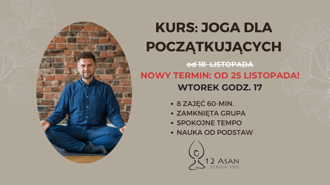 Kurs dla osób rozpoczynających przygodę z jogą. Czeka nas 8 godzinnych zajęć raz w tygodniu. Spotykamy się zamkniętej, kameralnej grupie. W spokojnym tempie dowiesz się czym jest joga, nauczysz się prawidłowej postawy ciała i podstawowych pozycji. Pod okiem doświadczonego nauczyciela zwrócisz uwagę na poprawną technikę wykonywania asan. Poznasz proste techniki oddechowe. Każde zajęcia zakończone są chwilą relaksu.